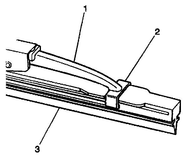 rubber (3) through the wiper blade assembly hooks (2) until the rubber locks into place.