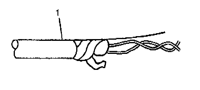 ^ Use caution not to wrap the drain wire in the tape (1).