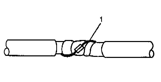 1. Remove the outer jacket (1). Use care not to cut into the drain wire of the mylar tape.