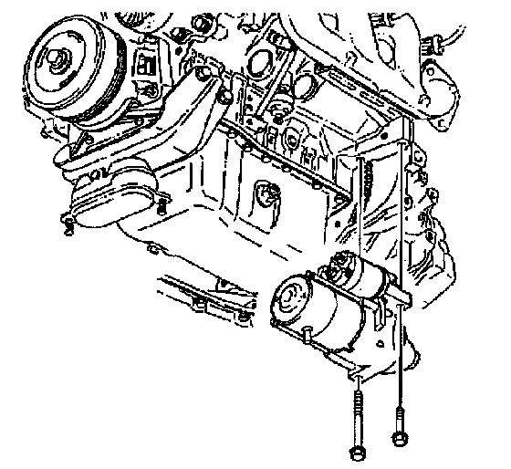 5. Remove the starter bolts. Remove the shims, as needed.