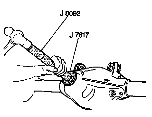 1. Use J 8092 and J 7817 in order to install the drive pinion gear outer bearing race into the rear axle housing if you remove the pinion gear outer bearing race.