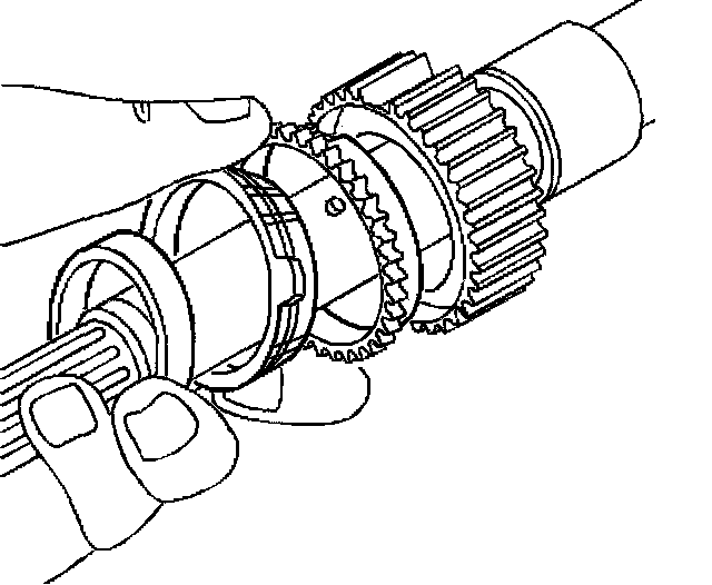 12. Line up scribed marks on the synchronizer hub and on the sleeve.