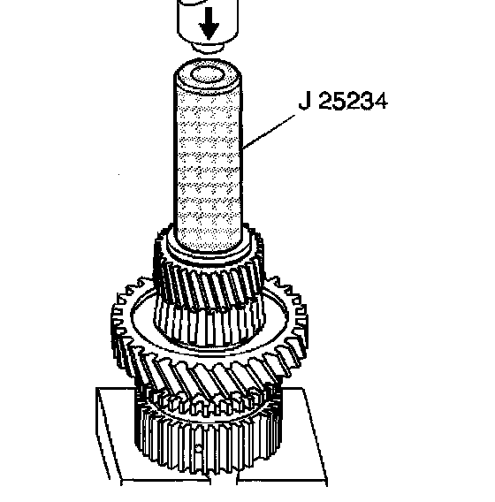 9. Install 5th speed driven gear using the J 25234 and a hydraulic press.