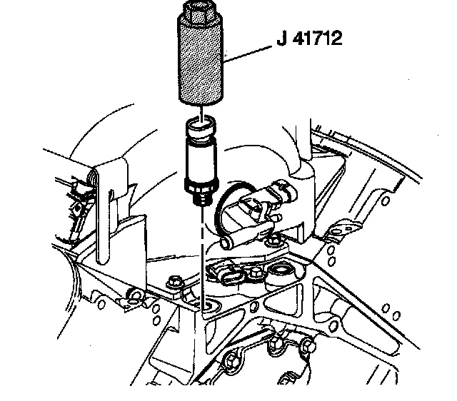 1. Remove the oil pressure sensor (if not previously removed) using the J 41712 or equivalent.