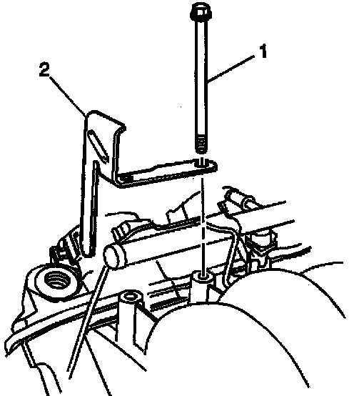 4. Install the fuel rail stop bracket (2).