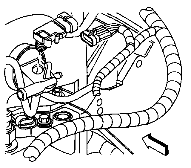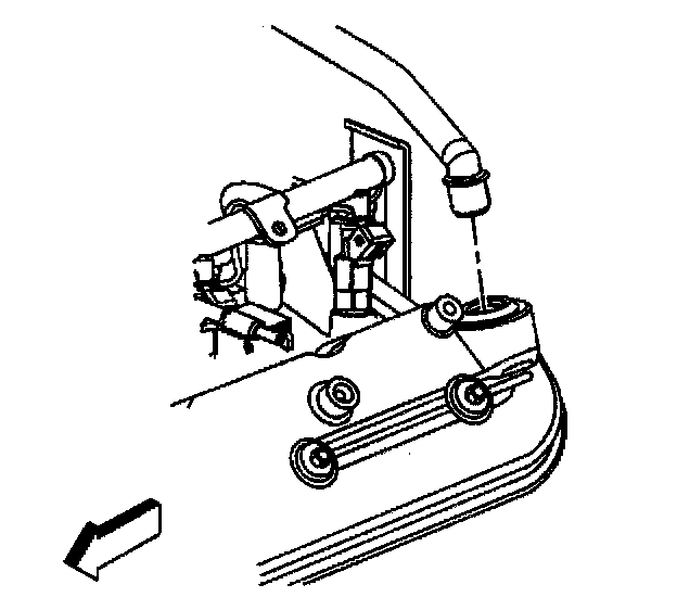 Caution: The fuel rail stop bracket must be installed onto the engine assembly. The stop bracket serves as a protective shield for the fuel rail in the event of a vehicle frontal crash. If the fuel rail stop bracket is not installed and the vehicle is involved in a frontal crash, fuel could be sprayed possibly causing a fire and personal injury from burns.