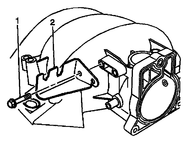 8. Install the accelerator control cable bracket (2) and bolts (1).