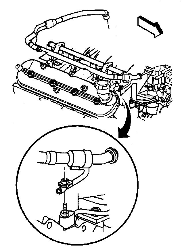 9. Install the Positive Crankcase Ventilation (PCV) valve pipe to the right rocker cover and intake manifold.