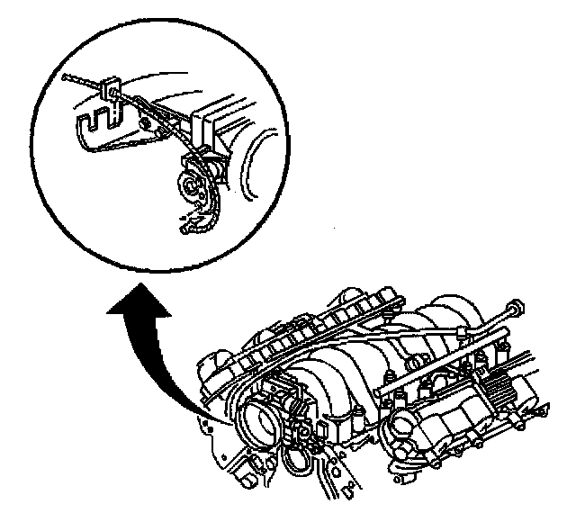 8. Connect the accelerator cable to the throttle body and the accelerator cable bracket (without traction control).