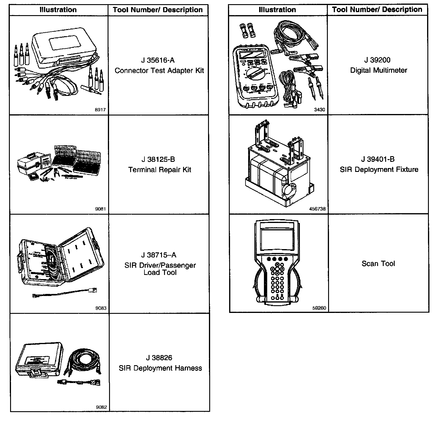 Use the J 38125-B Terminal Repair Kit for SIR wiring repair. This kit contains a special crimping tool, heat torch, and sealed splices. Do not use the terminals in the kit in order to replace damaged SIR system terminals unless specifically indicated by the terminal package.