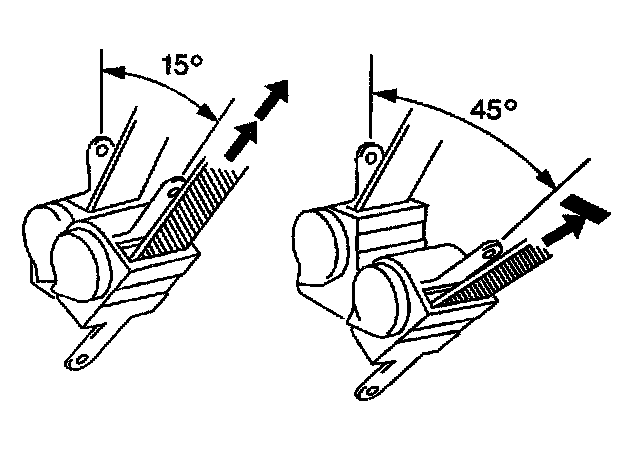4.3. Verify that the seat belt webbing can be pulled from the retractor at an angle of 15 degrees or less and cannot be pulled from the retractor at an angle of 45 degrees or more.