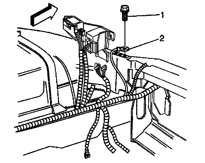 Tighten the forward lamp wiring harness grommet bolt (2) to 2 N.m (18 lb in).