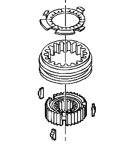 1st/2nd, 3rd/4th, 5th/6th SynchronizersImportant: Synchronizer components are not interchangeable. Keep all the synchronizer components separate. The synchronizer hubs and the sliding sleeves are a selected assembly. Keep the hubs and the sliding sleeves together as originally assembled.