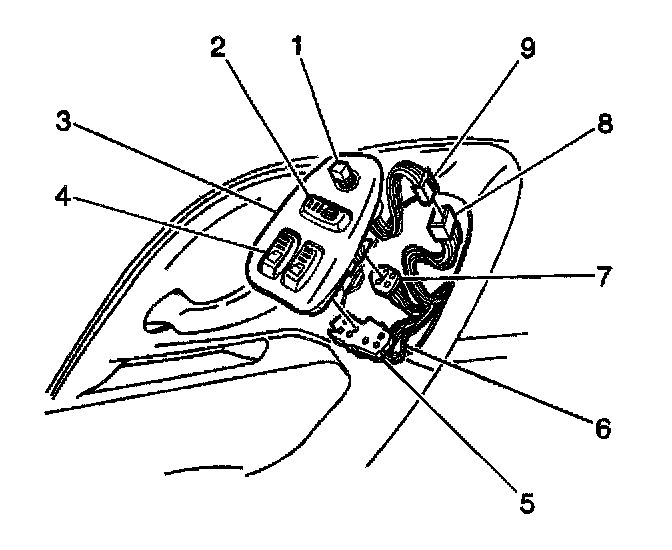4. Remove the power window switch (4) from panel.