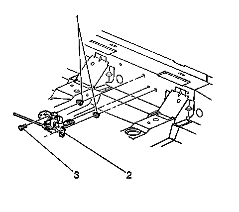 3. Install the remote release handle screws (3) and nuts (1).