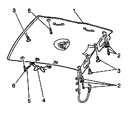 The one-piece formed headlining trim finish panel consists of molded substrate covered with a foam backed cloth. Install the following components in order to install the headlining trim finish panel: