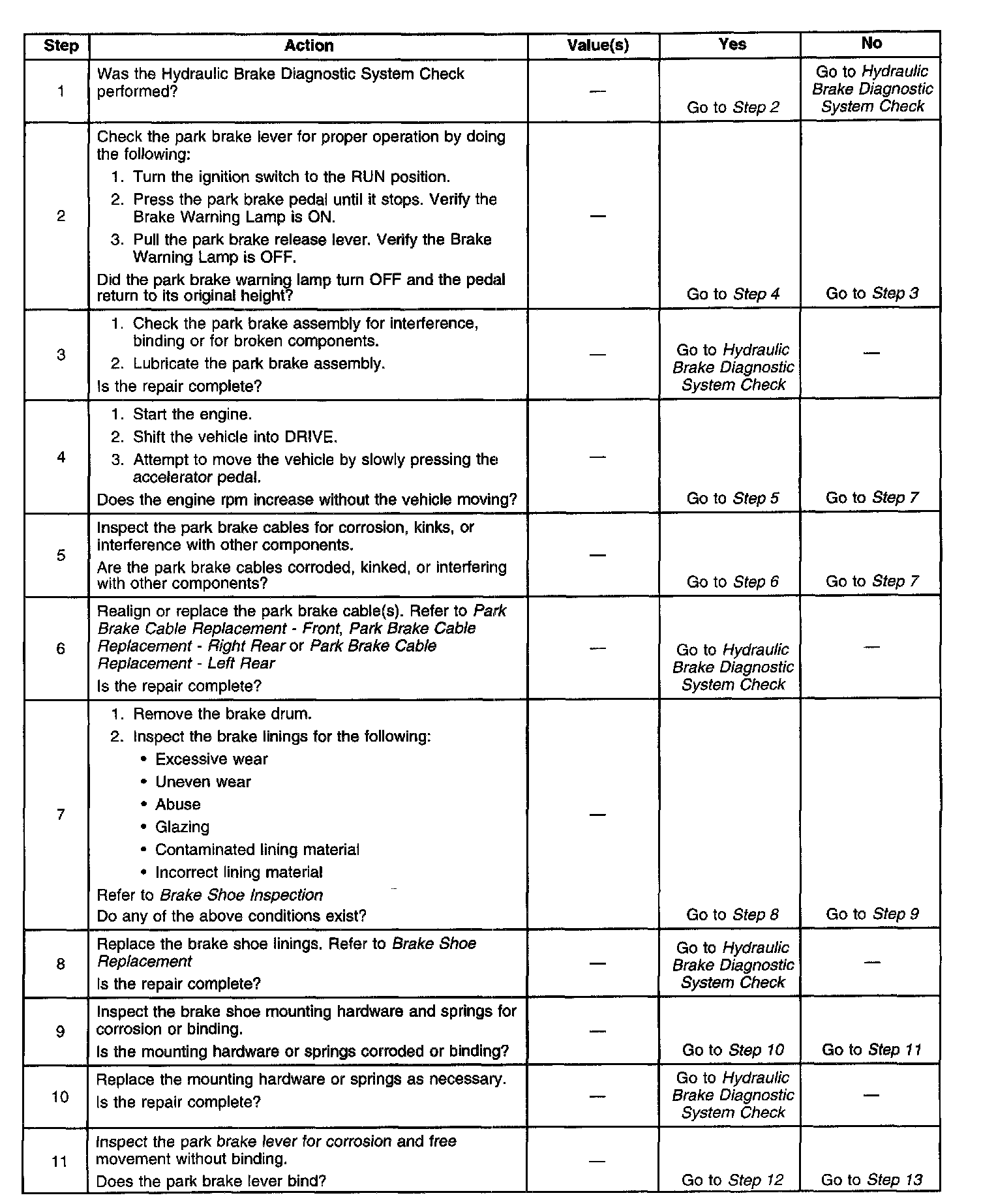 Diagnostic Chart, Steps 1 to 11