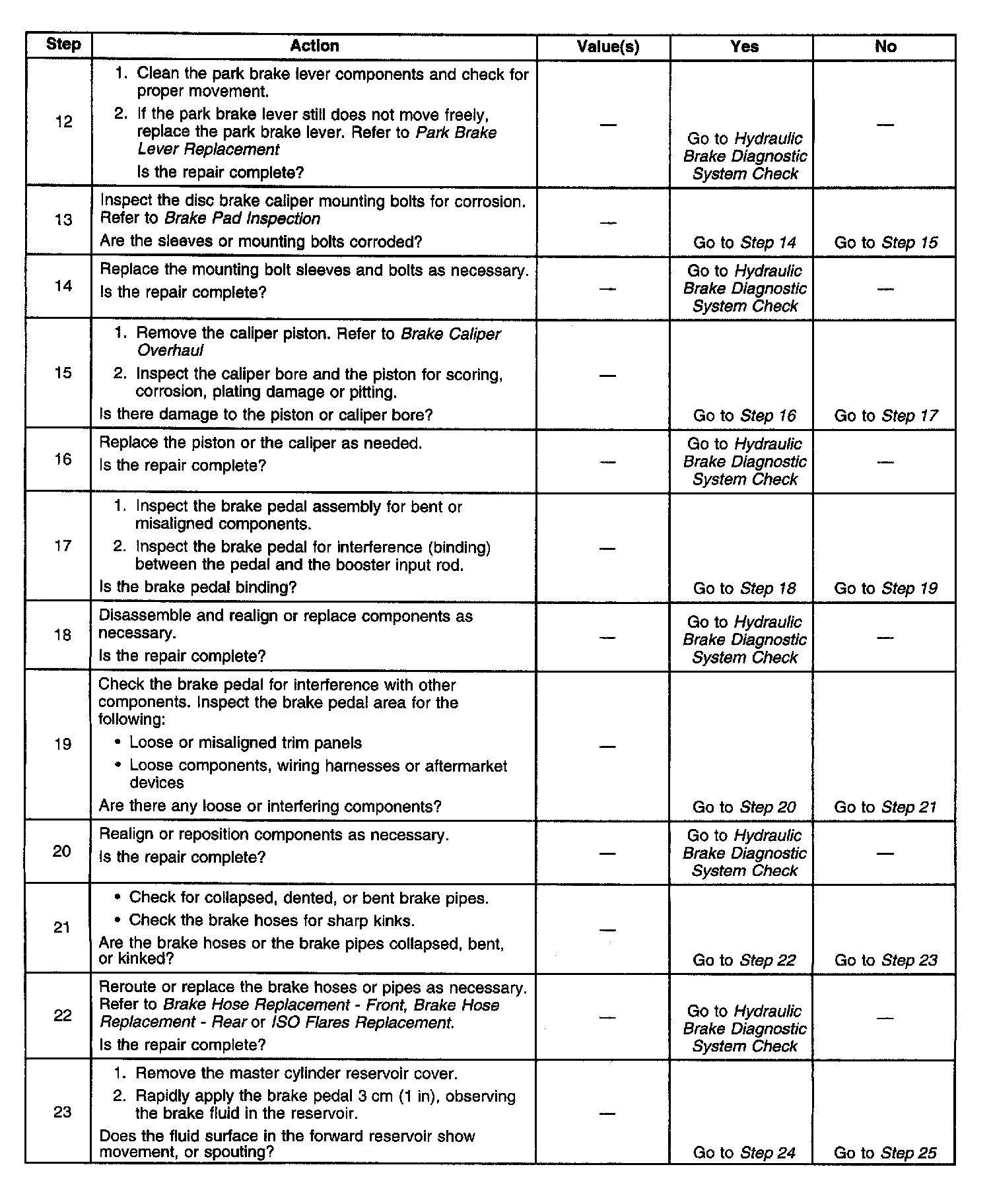 Diagnostic Chart, Steps 12 to 23