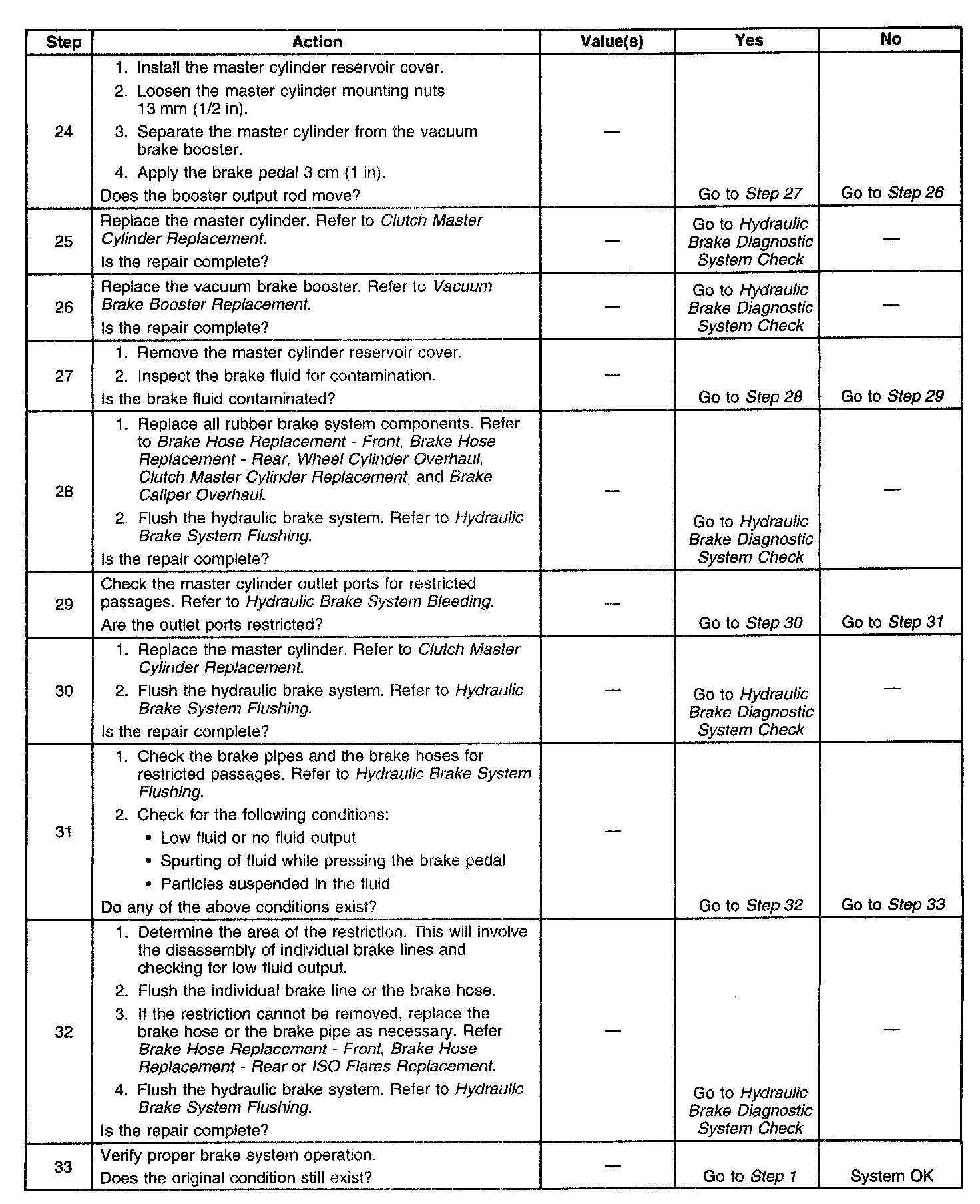 Diagnostic Chart, Steps 24 to 33