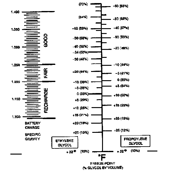 6.1. The coolant protection reading is at the point where the dividing line between light and dark crosses the scale. Antifreeze protection is the scale on the right.