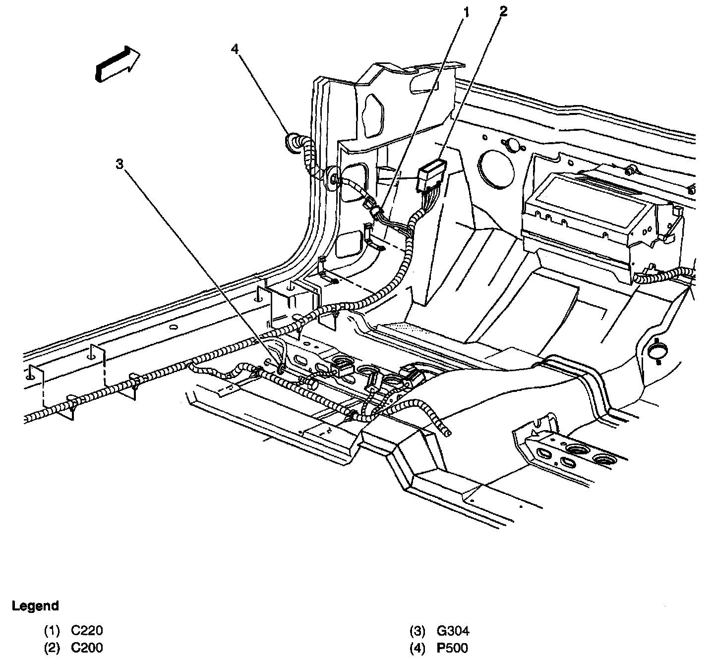 At the right front of the passenger compartment under passenger seat
