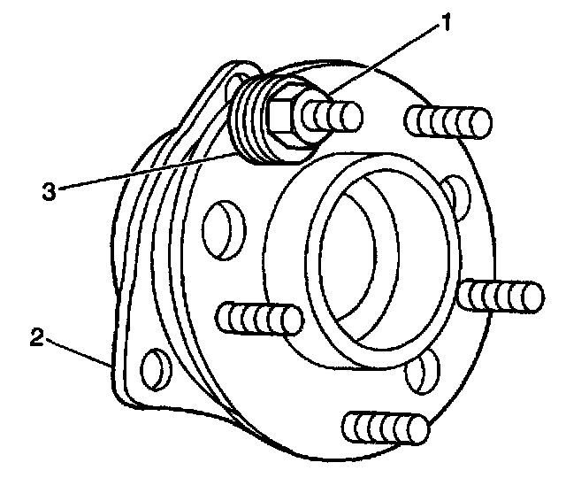 1. Install the replacement stud into the hub and bearing assembly (2).