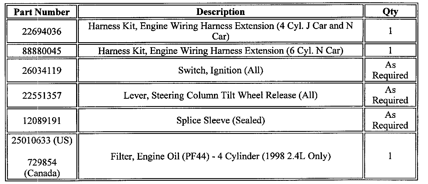 Additional parts, if required, are to be obtained from General Motors Service Parts Operations (GMSPO). Please refer to your "involved vehicles listing" before ordering parts. Normal orders should be placed on a DRO=Daily Replenishment Order. In an emergency situation, parts should be ordered on a CSO=Customer Special Order.