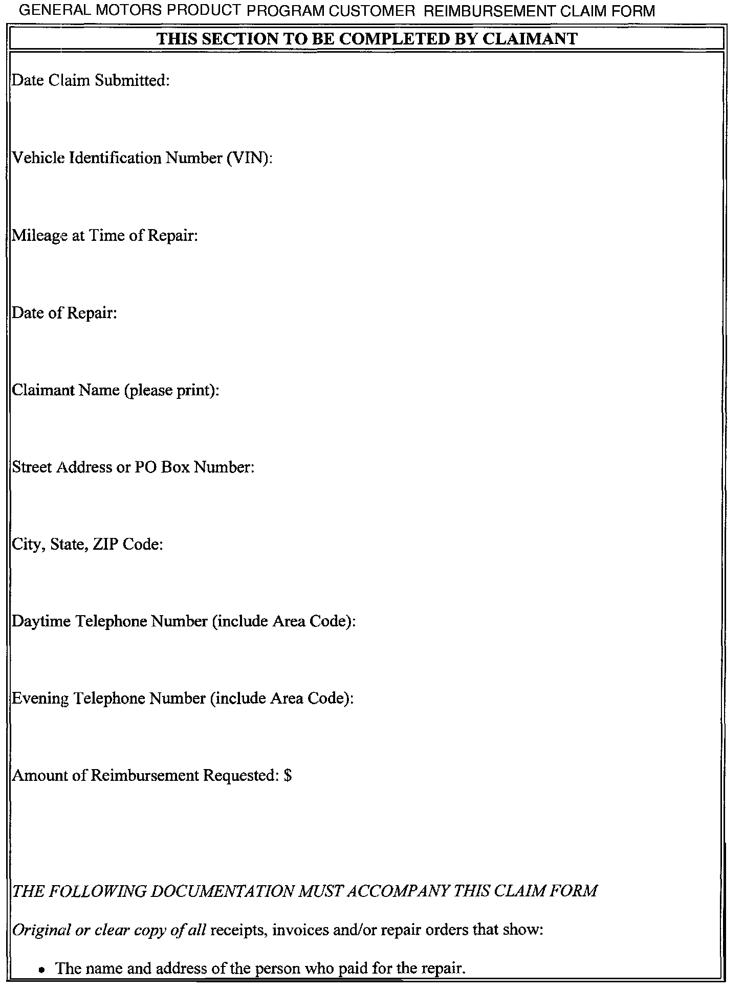 GENERAL MOTORS PRODUCT PROGRAM CUSTOMER REIMBURSEMENT PROCEDURE