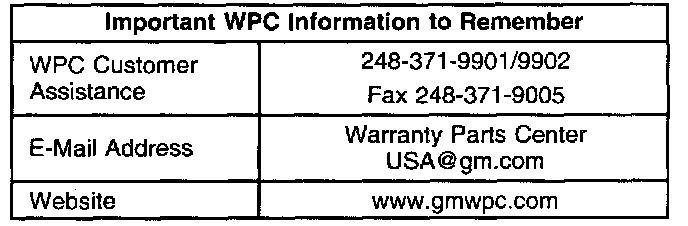 Copies of Forms (Parts Waiver, Material Request and the Yellow Freight Bill of Lading) are available via the WPC website at www.gmwpc.com or by calling or faxing WPC Customer Assistance (248-371-9901/9902 or fax 248-371-9005).