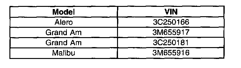 Vehicles built between the VIN breakpoints shown.