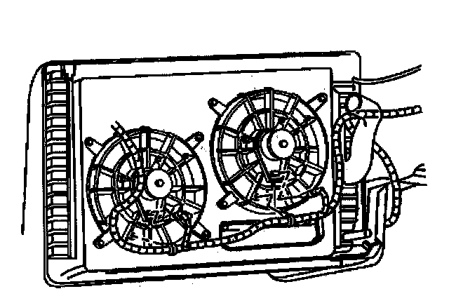46. Disconnect the electrical connectors and harness from the electric cooling fans.