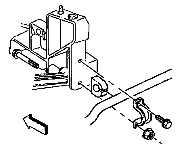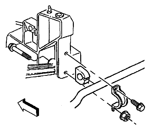 6. Install the rear stabilizer shaft clamps, bolts and nuts. Refer to Stabilizer Shaft Replacement in Steering and Suspension.
