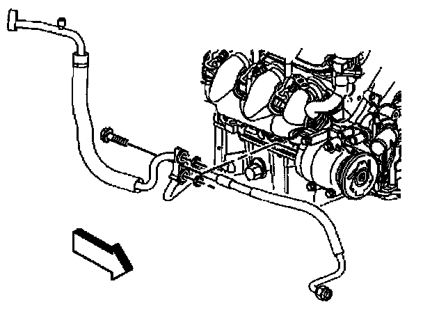 6. Remove the compressor hose to compressor retaining bolt.
