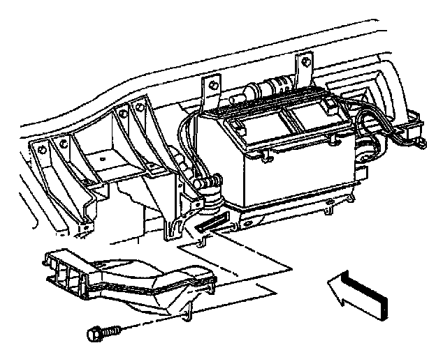 5. Install the windshield defroster duct RH retaining screw.