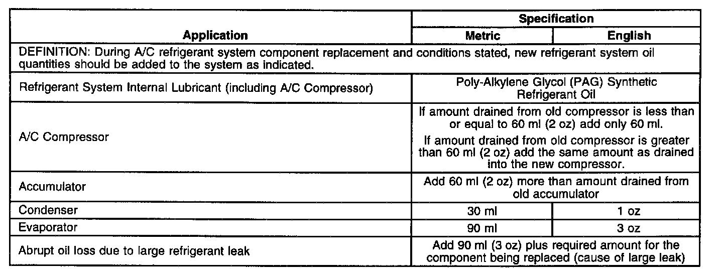 Refrigerant Oil Distribution Specification: