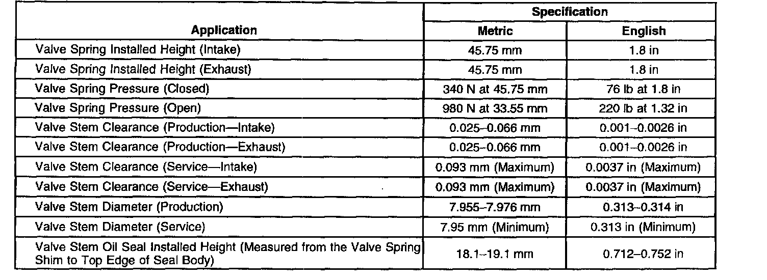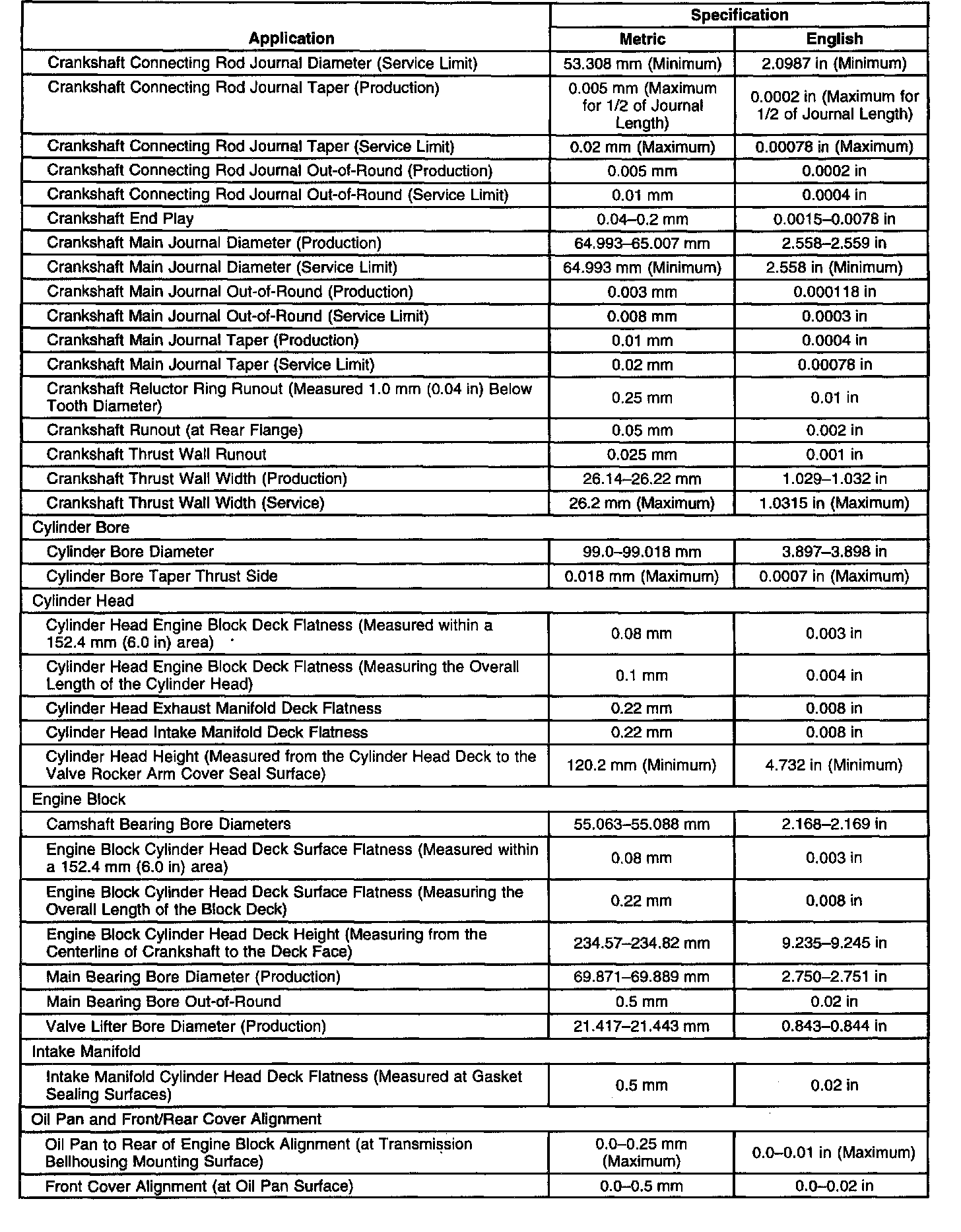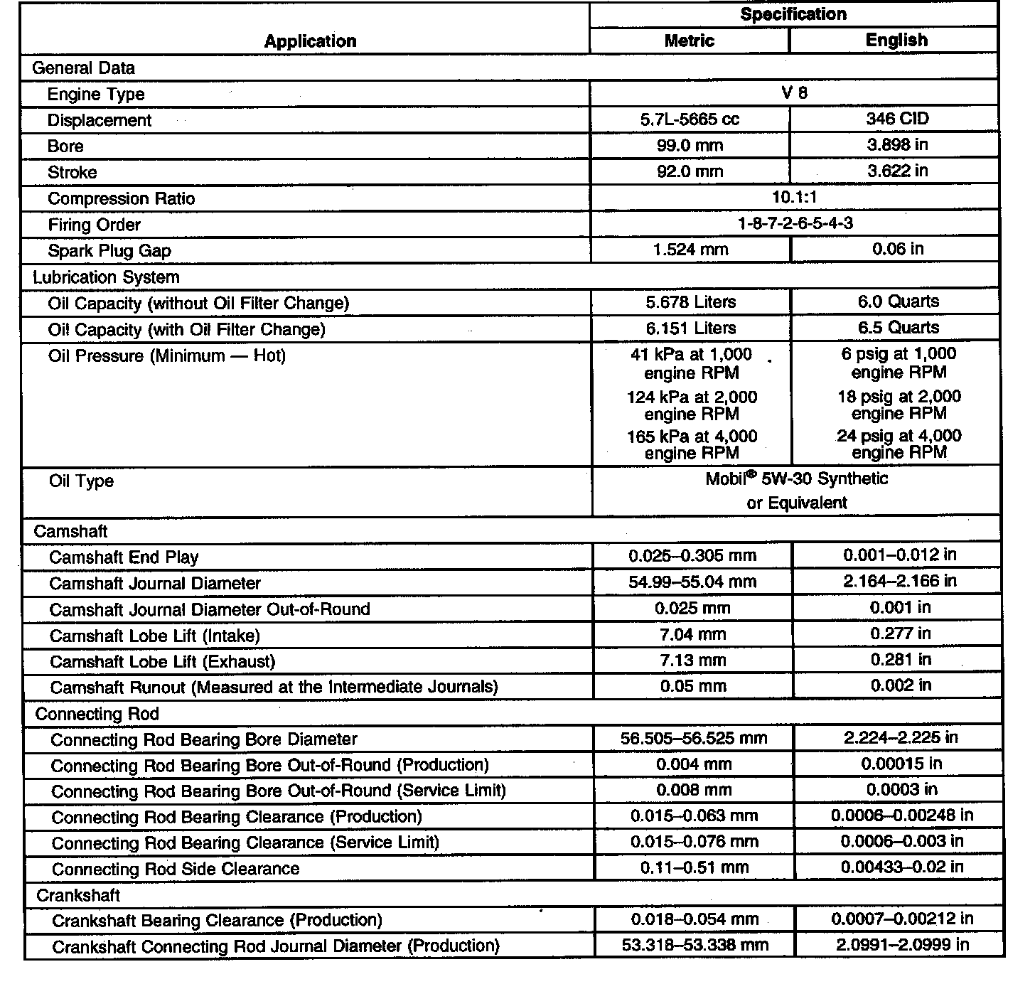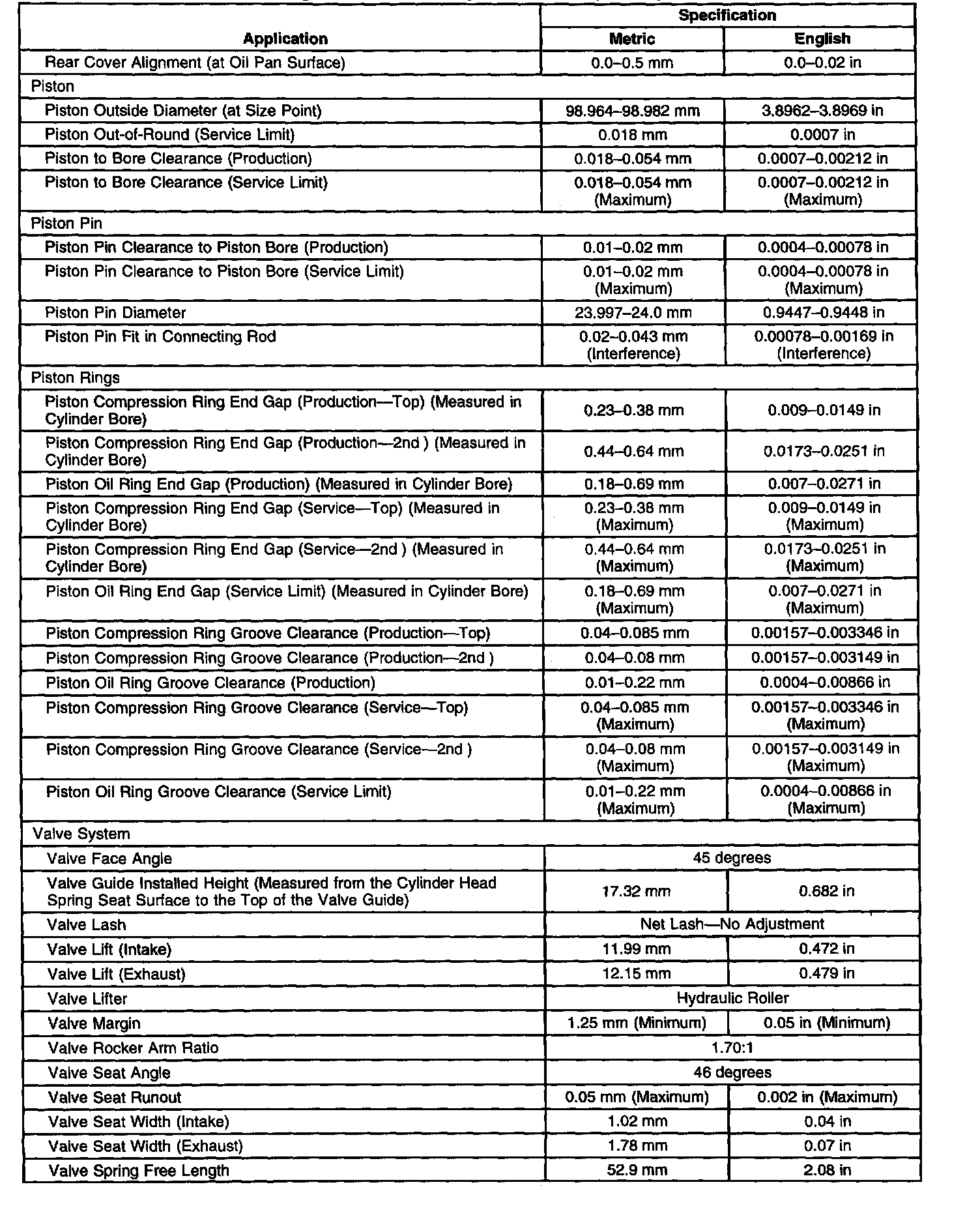 Engine Mechanical Specifications