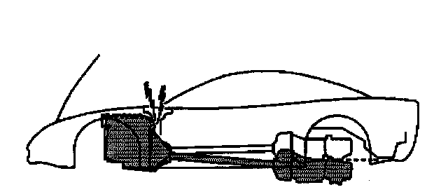 ^ When tilting down the rear of the driveline, observe the clearance between the rear of the engine and the composite dash panel. Do not allow the engine to rest unsupported against the composite dash panel, or vehicle damage may result.