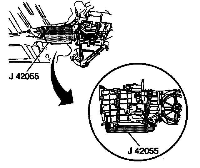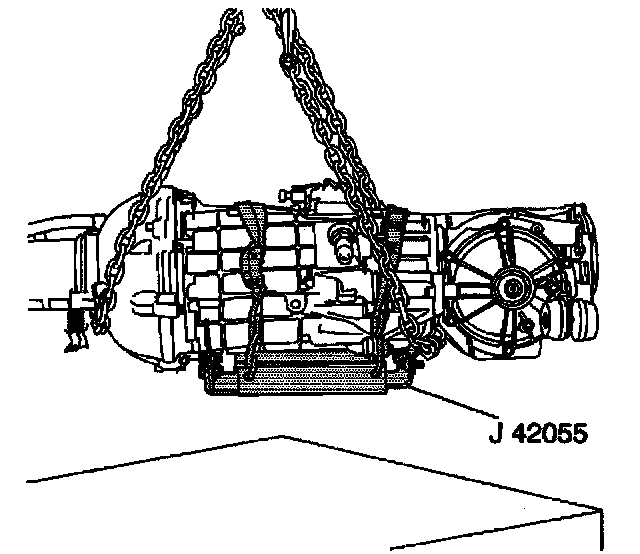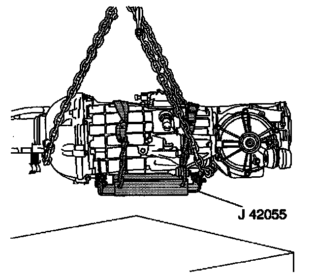 32. Install the J 42055 to a transmission jack.