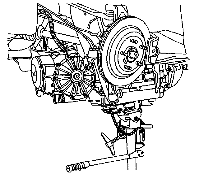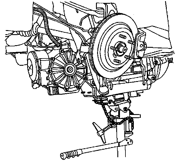 66. Disconnect the J 42055 from the transmission jack ONLY; the J 42055 will provide stability to the driveline components while working on a bench.