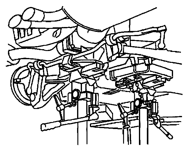 37. Position a transmission jack under the rear suspension crossmember and firmly secure the crossmember to the jack.