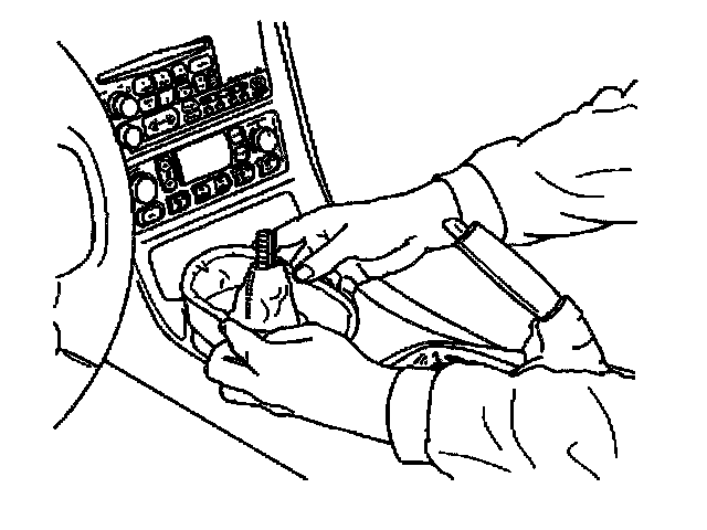 6. Grasp the sides of the shift control boot and apply light pressure in toward the shift control lever to begin to release the shift boot retaining tabs from the IP accessory trim plate.