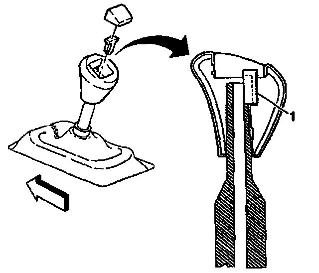 73. Install the shift control knob retainer (1) into the slots and seat fully.