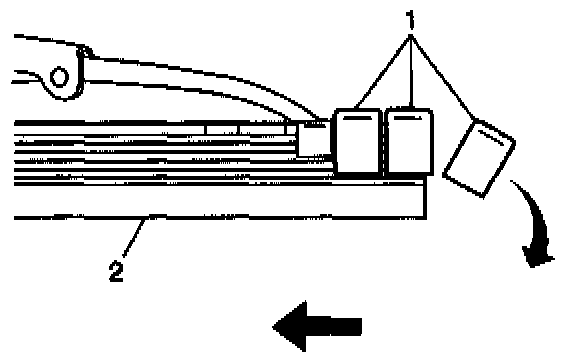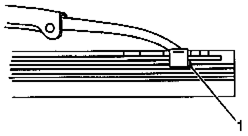 1. Starting at the heel end of the wiper blade slide the wiper blade element, notched end last, into the wiper blade claw sets (1). The plastic retainer caps will be forced off as the element is fully inserted.