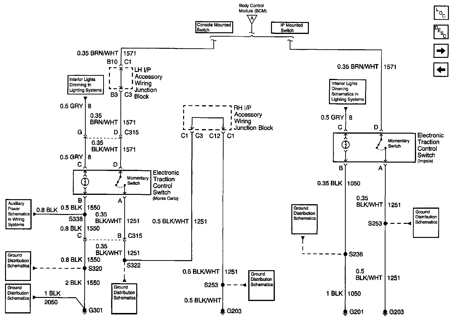 Body Control Module Schematics: Traction Control Switch: