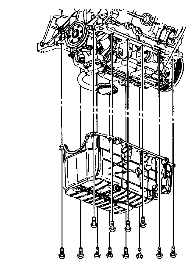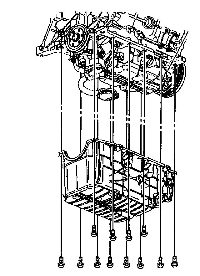 Install the oil pan retaining bolts. Refer to Oil Pan Installation.