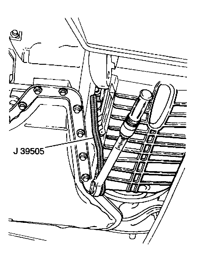 17. Use the J 39505 in order to remove the right oil pan side bolts.