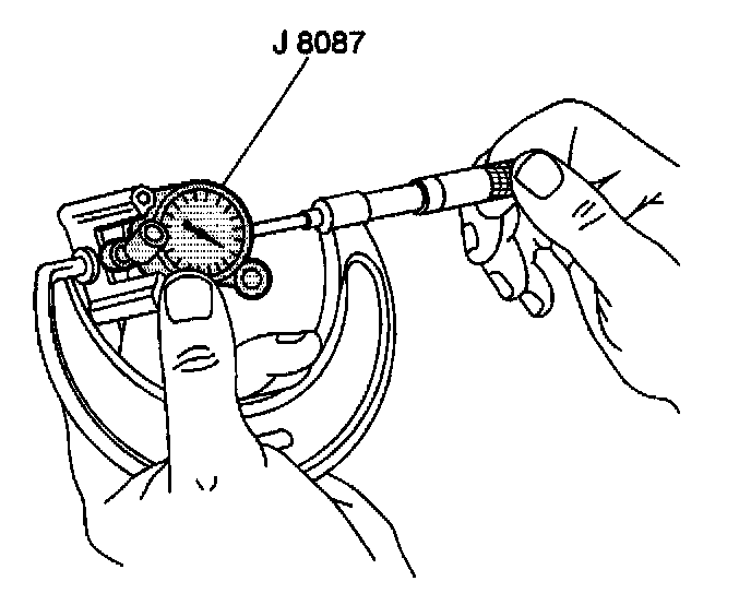 2. Measure the cylinder bore, using the J 8087 If the piston is worn beyond specifications, rebore and hone to size.