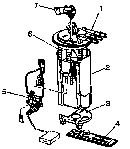 3. Remove the fuel level sensor (5) from the modular fuel sender.