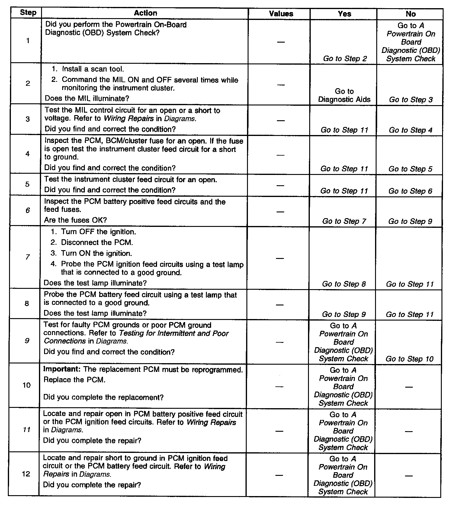 Powertrain On Board Diagnostic (OBD) System Check
