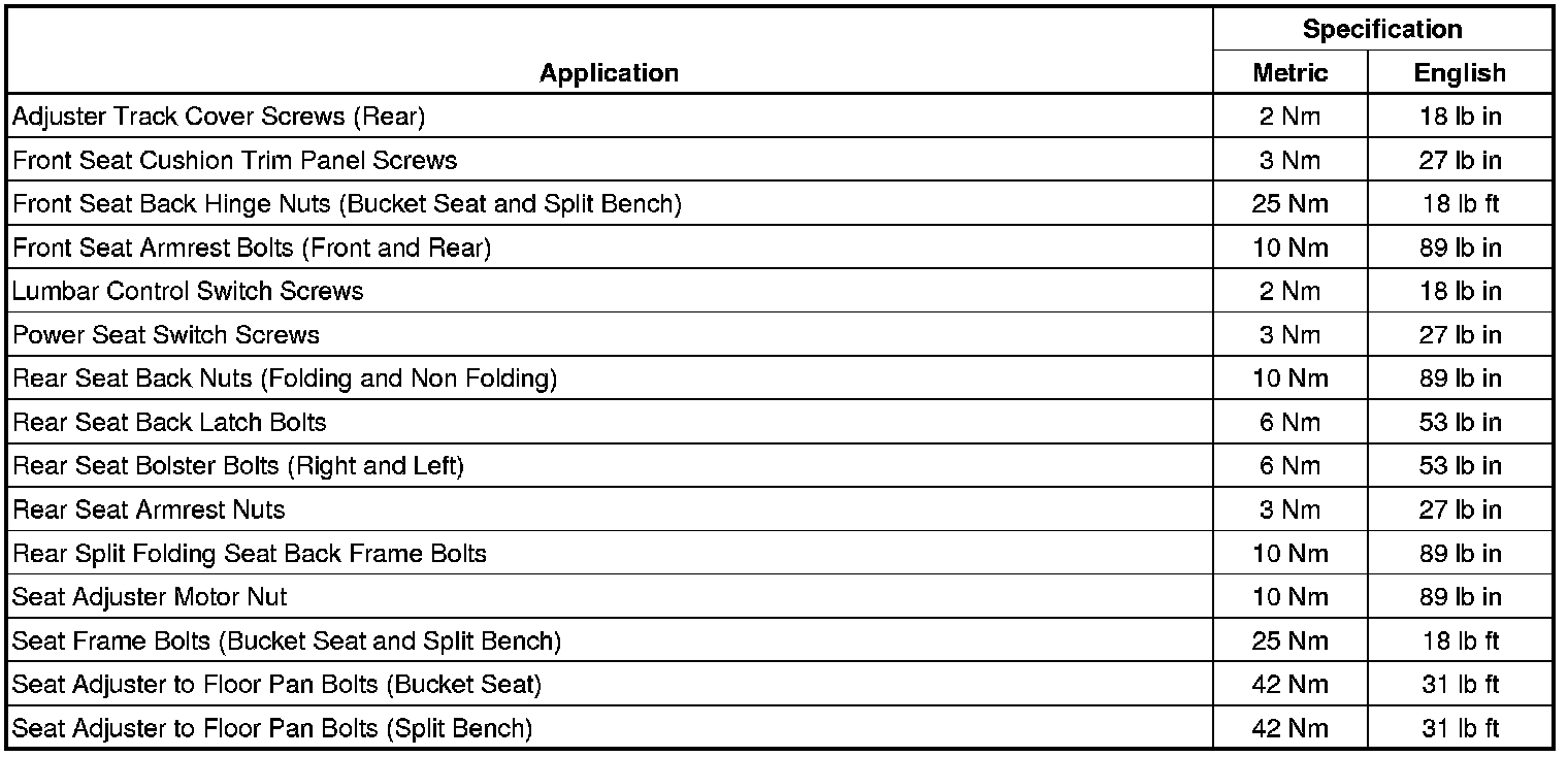 Seats: Specifications
